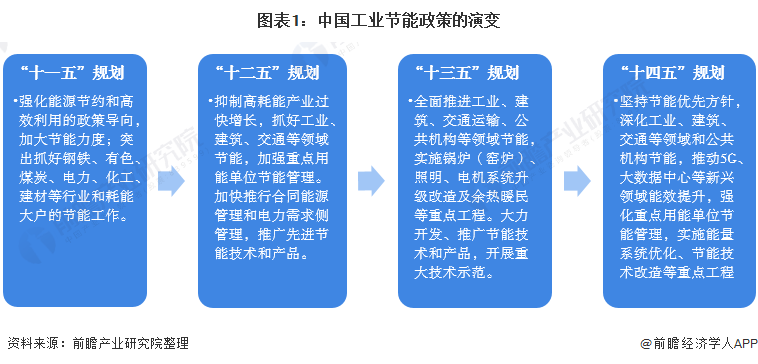 “十一五”規(guī)劃期間,強(qiáng)調(diào)鋼鐵、有色、煤炭等行業(yè)的節(jié)能。“十二五”期間,開(kāi)始關(guān)注合同能源管理、節(jié)能技術(shù)及產(chǎn)品的發(fā)展。“十三五”期間,重點(diǎn)實(shí)施鍋爐(窯爐)、照明、電機(jī)系統(tǒng)升級(jí)改造及余熱暖民等重點(diǎn)工程。到“十四五”規(guī)劃,工業(yè)節(jié)能已經(jīng)從傳統(tǒng)領(lǐng)域擴(kuò)大到5G、大數(shù)據(jù)中心等新興行業(yè)的節(jié)能減排。