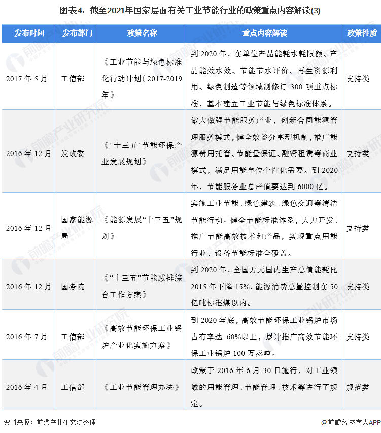 自2016年以來(lái),國(guó)務(wù)院、國(guó)家發(fā)改委、國(guó)家能源局等多部門(mén)都陸續(xù)印發(fā)了支持、規(guī)范工業(yè)節(jié)能行業(yè)的發(fā)展政策,內(nèi)容涉及促進(jìn)節(jié)能服務(wù)發(fā)展,大力發(fā)展工業(yè)節(jié)能設(shè)備等,鼓勵(lì)高耗能行業(yè)使用節(jié)能環(huán)保裝備等: