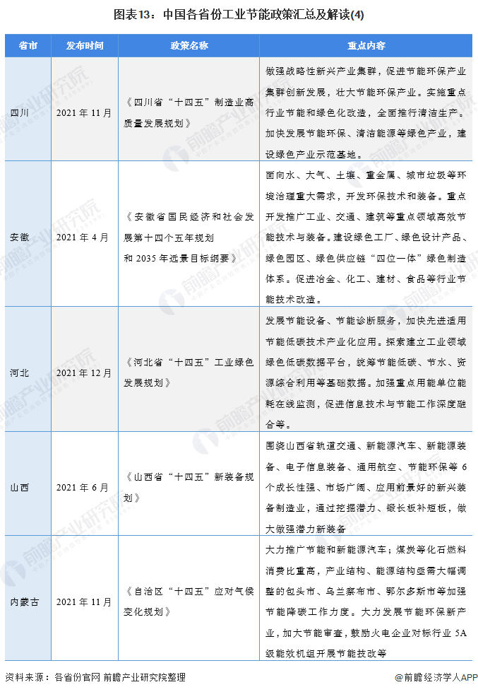 ——31省市工業(yè)節(jié)能行業(yè)政策匯總
