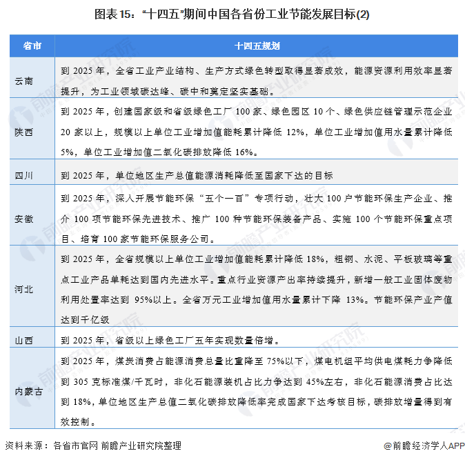 ——31省市工業(yè)節(jié)能行業(yè)發(fā)展目標(biāo)解讀