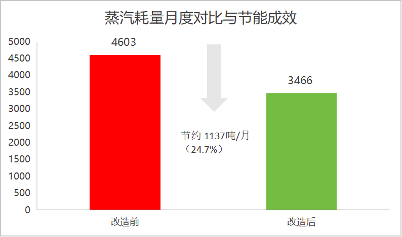 同條件同產量蒸汽耗量降低24.7%;